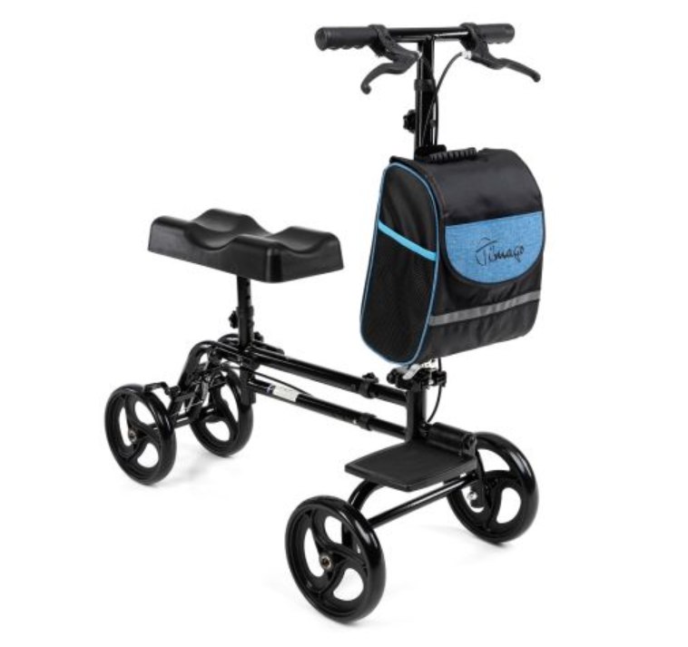 Timago Knee Walker to praktyczne i wygodne rozwiązanie dla osób, które czasowo nie mogą obciążać jednej z kończyn dolnych. Sprzęt doskonale sprawdza się w okresie rekonwalescencji po urazach stopy, kostki lub podudzia, stanowiąc komfortową alternatywę dla tradycyjnych kul.